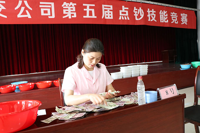 每位選手在規(guī)定時間內(nèi)完成點鈔任務。